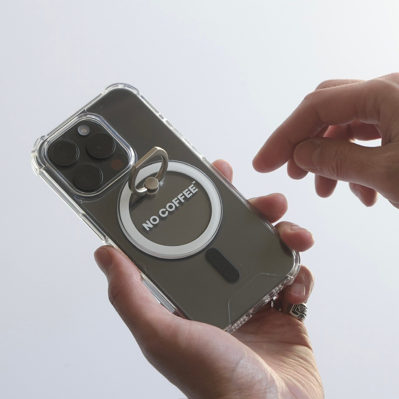 Magsafe용 스마트폰 링.iPhone 본체 또는 Magsafe 대응 케이스에 직접 부착하여 사용.자성을 이용해 쉽게 부착 & 분리 가능.블랙과 화이트의 2색 전개.재질: TPU/PC